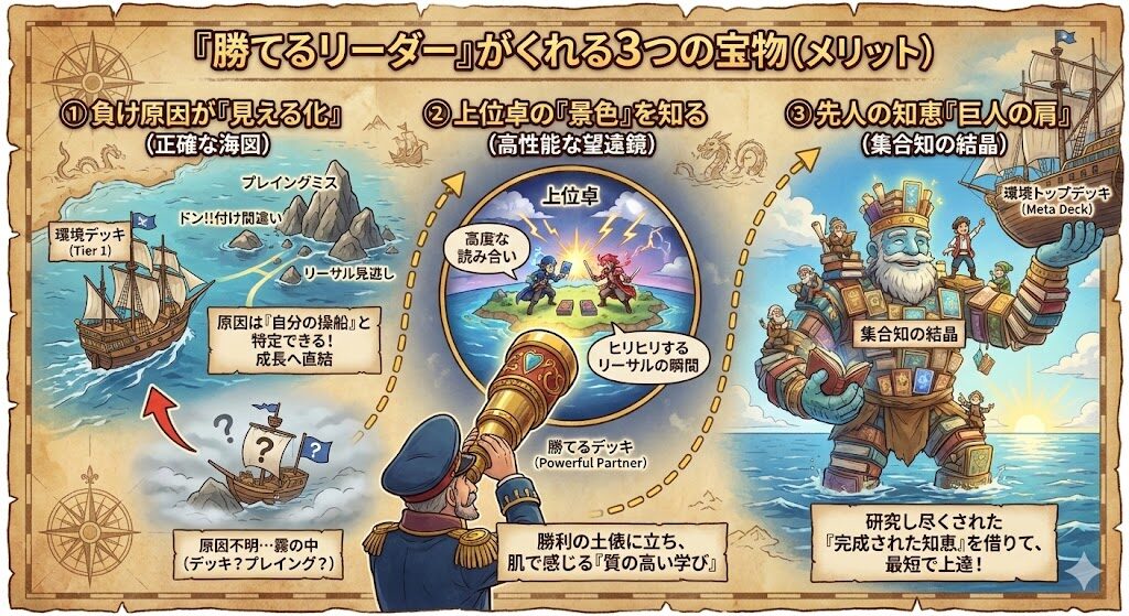 では、なぜ「勝てるリーダー(環境デッキ)」を使うことが上達につながるのでしょうか?それには、明確な理由が3つあります。